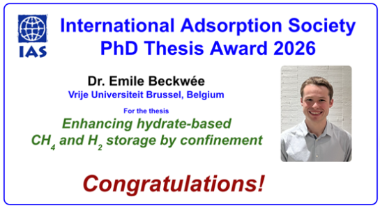 The International Adsorption Society (IAS) is happy to announce this year's PhD Thesis Award recipient, Dr. Emile Beckwée from the Vrije Universiteit Brussel, Belgium.